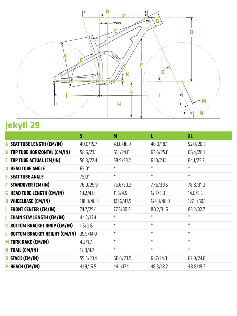 Frame: | ALL-NEW Jekyll 29", 150mm travel, BallisTec Carbon front triangle, SmartForm C1 Alloy swingarm, Ai offset drivetrain, ISCG05, PF30, flat mount brake, tapered headtube |